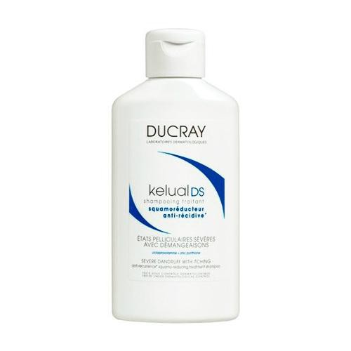 Шампунь для лечения тяжелых форм перхоти Келюаль DS Kelual Ducray, сопровождающейся зудом  кожи головы. Уникальный состав шампуня оказывает эффективное действие на основную причину возникновения перхоти: он способен подавлять грибки типа Malassezia, оказывая на них фунгистатическое действие, что способствует быстрому избавлению от перхоти. Кремообразная текстура легко наносится и распределяется по волосам, не течет, позволяя массировать кожу головы. Шампунь Келюаль DS устраняет покраснения и зуд кожи головы, насыщая ее нежным ароматом. Рекомендован при острых рецидивирующих состояниях перхоти. Применение шампуня очень удобно чередовать с шампунем Элюсьон для чувствительной кожи головы, для обеспечения дополнительного ухода за волосами.